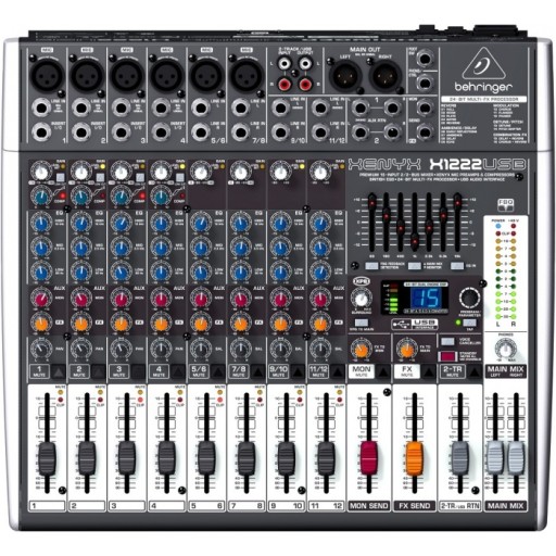 16-kanałowy mikser XENYX X1222USB z 2/2 podgrupami, przedwzmacniaczami mikrofonowymi XENYX, kompresorami, klasyczną "brytyjską" korekcją, 24-bitowym procesorem efektów oraz interfejsem audio USB. Doskonały ultra-niskoszumowy mikser analogowy 4 nowoczesne przedwzmacniacze mikrofonowe Xenyx z zasilaniem phantom