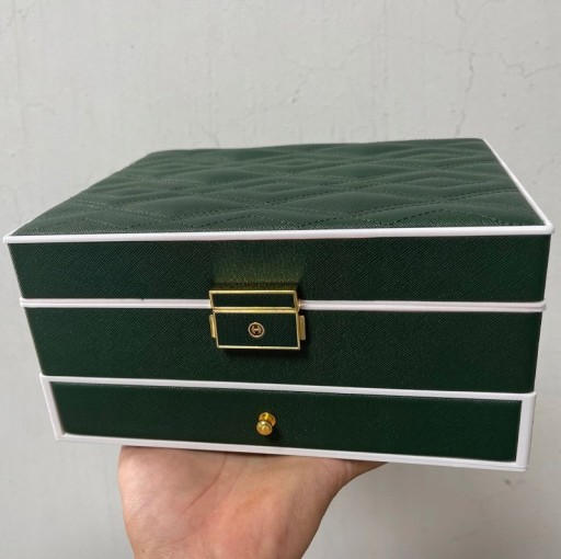 - Pudełko na biżuterię z lusterkiem i przyciskiem blokującym