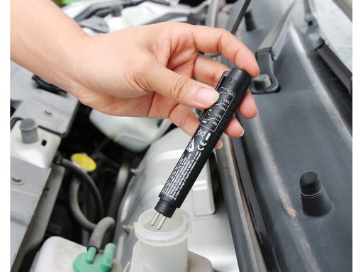 Tester został wyposażony w czytelny miernik LED, który pozwala na łatwe odczytanie stanu płynu hamulcowego. Przy pomocy trzech kolorów, oznaczających rózne poziomy wody w płynie hamulcowym. Jest kompatybilny z płynami hamulcowymi DOT 3/4/5/5.1, co oznacza, że moższ używać go w różnych typach samochodów.
