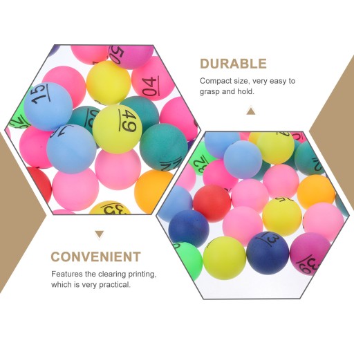 Opakowanie 50 sztuk plastikowych piłeczek do tenisa stołowego. Świetne do loterii lub loterii. Wybrany materiał, który ma długą żywotność. Zawiera nadruk rozliczeniowy, który jest praktyczny. Możesz także użyć ich do stworzenia własnego projektu artystycznego.