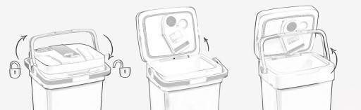 Lodówka posiada system zabezpieczający przed przypadkowym otwarciem. Dzięki specjalnemu mechanizmowi blokującemu pokrywę, utrzymanie szczelności i izolacji termicznej jest gwarantowane. Pokrywa pozostaje zamknięta, gdy rączka do przenoszenia znajduje się z tyłu lub na górze. Aby otworzyć lodówkę, należy przesunąć rączkę na przód.