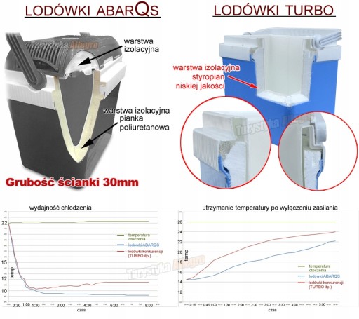 Lodówka IB-28L+ posiada wyjątkową izolację termiczną o grubości ponad 30 mm, która umożliwia utrzymanie chłodu nawet przez 6 godzin po jej wyłączeniu.