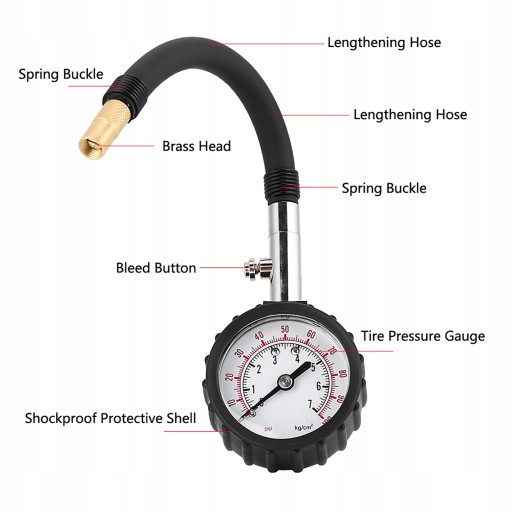 2.Szeroki zakres pomiarowy: 0-100 psi.