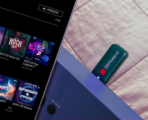 Potrzebujesz więcej inspiracji? Roland Cloud oferuje stale rosnący wybór brzmień premium i ekscytujących nowych stylów aranżacji. GO:KEYS 3 obsługuje również Roland Cloud Connect, opcjonalny adapter bezprzewodowy, który umożliwia przeglądanie, odsłuchiwanie i pobieranie treści Roland Cloud ze smartfona.