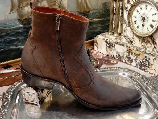 Zapraszamy do kupna pięknych butów, wyjątkowo udanych kolorystycznie, wykonanych ze skóry bydlęcej, typu crazy, wewnątrz również wykończonych skórą naturalną .To nowa skóra, doskonale wpisuje się w "kowbojski klimat ". To taka skóra, że jeśli poskrobiesz paznokciem to zostanie ślad ale po ponownym przetarciu znika .Buty mimo nadają się dla osób z wysokim podbiciem i są wyjątkowo wygodne . Podeszwa elastyczna z doskonałej mieszanki gumowej. Nie ma problemu z konserwacją, najlepiej tłuszczem do butów dwa razy do roku :)Buty w naturze są piękniejsze niż na zdjęciach.