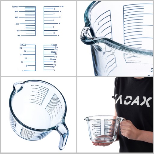 ✅ERGONOMICZNA - szklany pojemnik z miarką jest wyposażony w ergonomiczną rączkę, zapewniającą wygodę i komfort użytkowania podczas odmierzania i przenoszenia składników. Zapomnij o wylaniu czy rozsypaniu półproduktów !