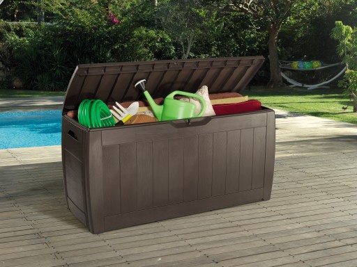 Skrzynia to praktyczny schowek o pojemności 270 litrów doskonały do postawienia w ogrodzie, na tarasie czy balkonie. Z powodzeniem ulokujesz w nim akcesoria grillowe, poduszki, koce, zabawki, ale i narzędzia do pielęgnacji roślin o łącznej wadze do 20 kg. Skrzynia idealnie nada się również do użytkowania wewnątrz: to tu swoje miejsce odnajdą ubrania, książki, dziecięce gadżety, lalki, misie czy komplety pościeli dla gości.