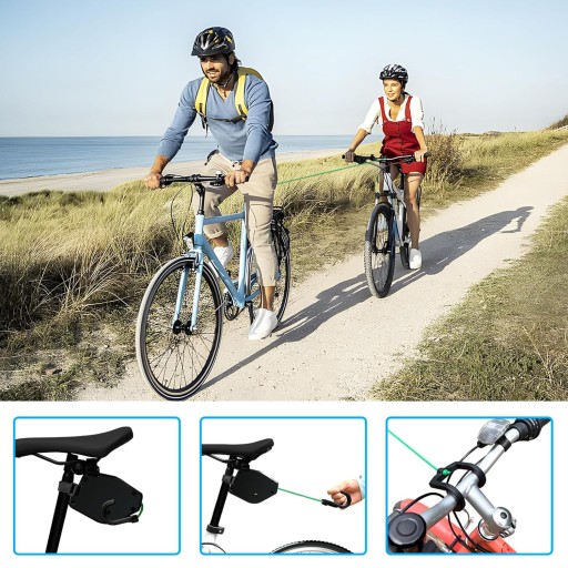 - Łatwy w użyciu, wystarczy przymocować linę do siodełka z przodu roweru i główki ramy z tyłu roweru.