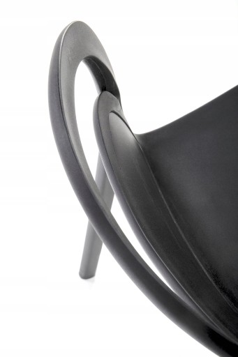 - Wyprofilowane, wykonane z polipropylenu w kolorze czarnym. Na oparciu uchwyt ułatwiający przenoszenie krzesła.