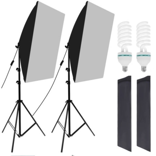 Softbox to idealny produkt dla początkujących oraz profesjonalnych fotografów. Produkt ten świetnie zmiękcza światło oraz usuwa ostre cienie dlatego sprawdzi się w fotografiach produktowych oraz portretach. W zestawie otrzymasz również 2 statywy, 2 żarówki światła stałego o barwie 5500K, 2 dyfuzory oraz 2 pokrowce na stojaki.
