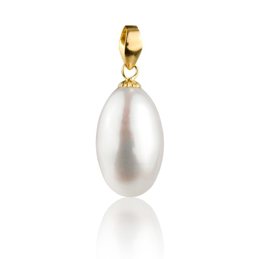 Czarująca zawieszka z prawdziwą perłą hodowaną słodkowodną o nietypowych wymiarach. Jej podłużny kształt i biel podkreślona wysokim połyskiem przyciągną uwagę każdej miłośniczki pereł.