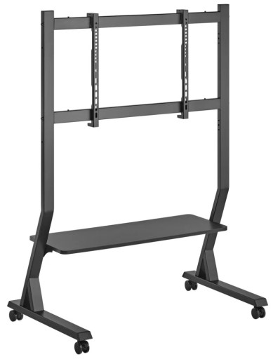 Wózek na kółókach pod telewizor 45 "-90 " wyposażony w dużą półkę do przechowywania odtwarzacza DVD, konsoli lub innych przedmiotów (848 x 300 mm). Zaprojektowany specjalnie dla telewizorów z dużym ekranem, blokowane koła zapewniają jednocześnie mobilność i stabilność. Można go łatwo przenieść w dowolne miejsce, aby móc prowadzić wideokonferencje, grać i nie tylko.