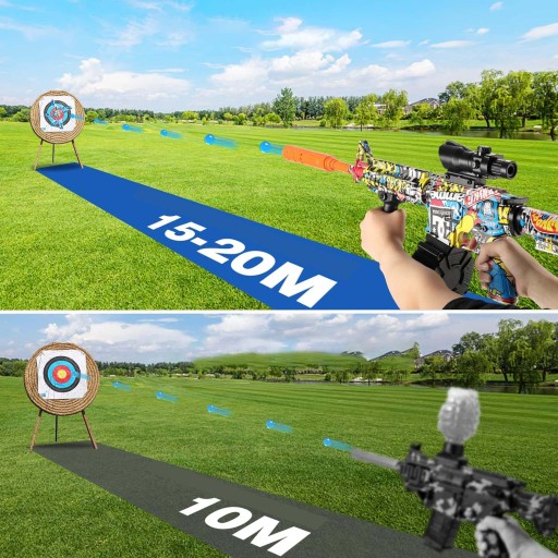 Zabawka na zewnątrz: Gry strzeleckie nigdy nie wychodzą z mody. Nasz miotacz kulek żelowych, oparty na tradycyjnych zabawkach do strzelania, posiada zaktualizowane kulki, których potrzebujemy, więc nie musisz się już martwić o zgubienie kulek piankowych lub zanieczyszczenie środowiska. Uważamy, że jest on również bardziej odpowiedni dla Ciebie i Twoich znajomych lub rodziny do zabawy w pomieszczeniach i na zewnątrz, takich jak parki, trawniki, dżungla, hale widowiskowe itp.