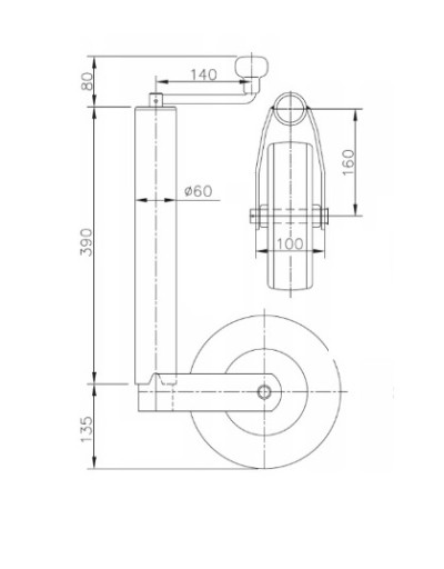 Опорное колесо 250 кг, поддерживающее эвакуаторы Fi60 220/60