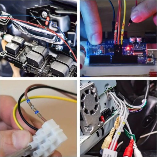 - Szybkozłączki Z Cyną: Praktyczny zestaw z szybkozłączkami z cyną, umieszczony w plastikowym pudełku, który ułatwia bezproblemową naprawę i łączenie przewodów za pomocą rurek termokurczliwych.