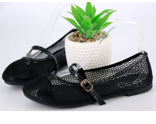BALERINY ZE SPRZĄCZKĄ AŻUROWE BUTY Z SIATECZKĄ CZARNE LETNIE DAMSKIE