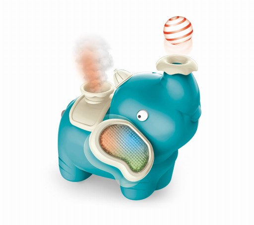 Potrafi jeździć przy dźwiękach melodii, wypuszczać z otworu w grzbiecie prawdziwy dym, a także wydmuchiwać z trąby powietrze, na którym unosi się piłeczka, lewitując tym samym nad słoniową trąbą. Aby przystąpić do zabawy, wystarczy wlać wodę do otworu pod czapką słonika i ustawić jego ogonek na wybrany tryb.