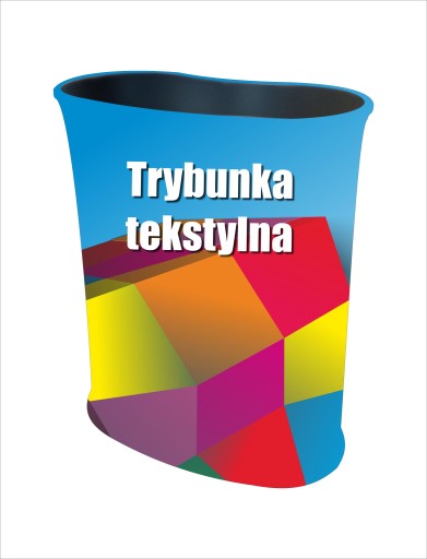 Aluminiowy stelaż, blaty oraz wydruk na materiale sprawiają, że trybunka jest bardzo prostą w obsłudze formą reklamy.