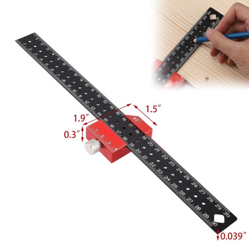 - Wysokiej jakości materiały zapewniają trwałość. Górny znacznik wykonany jest ze stopu aluminium o grubości 1,3 mm i długości 30 cm. Używaj jednostek metrycznych i bądź łatwy do odczytania.