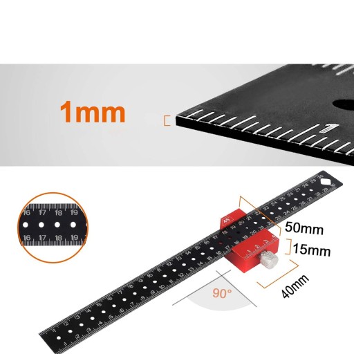 - Zaoszczędź cenny czas i usprawnij swój proces dzięki aluminiowej linijce do znakowania: dzięki ogranicznikowi linijki możesz wykonać 3 kroki na raz i szybko postępować - dzięki czemu znakowanie stanie się czystą radością!