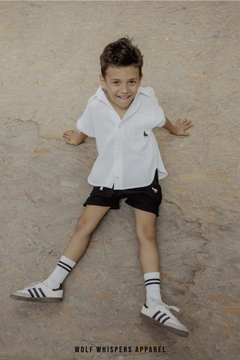 Krótki, podwinięty rękaw oraz zaokrąglony dół nadają koszuli lekkości. Kołnierzyk i zapięcie na guziki dodają elegancji, a kieszonka z boku ozdobiona logo małego wilczka nadaje koszuli oryginalny charakter. Dodatkowo, naszywka z logo marki umieszczona z tyłu dodaje koszuli prestiżu i klasy.