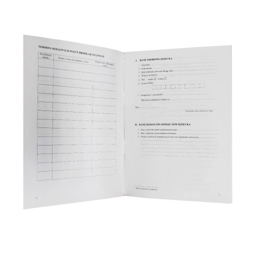 - Miękka okładka w oprawie zeszytowej, zawiera 76 stron: Książeczka Zdrowia Dziecka (66 stron) i Książeczkę Szczepień (10 stron)
