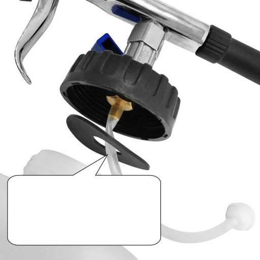 🍃 Przyłącze: wtyczka europejska; materiał uchwytu: aluminium; wielkość przyłącza: 10 mm; wlot powietrza: 1/4 (cala); ciśnienie: 6-9,2 bara; długość narzędzia: 320 mm; pojemność: 1000 ml; waga: ok. 0,54 kg