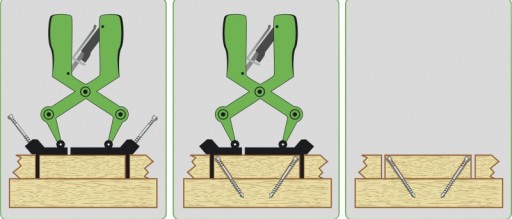 - Zaciśnij narzędzie montażowe HDS nad deską i umieść wkręt w każdy otwór montażowy