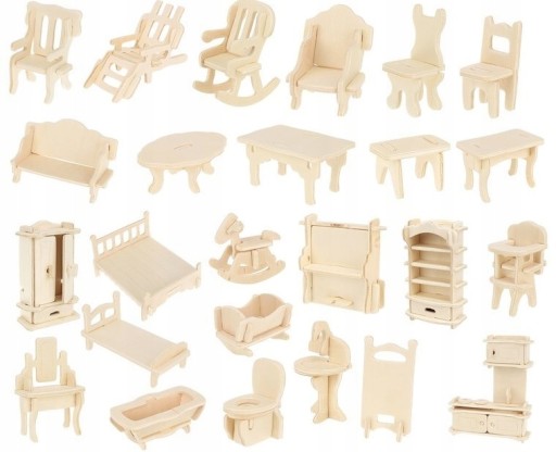 ДЕРЕВЯННАЯ МЕБЕЛЬ ДЛЯ КУКОЛЬНОГО ДОМИКА НАБОР МЕБЕЛИ АКСЕССУАРЫ 34 ИГРУШКИ СДЕЛАЙ САМ