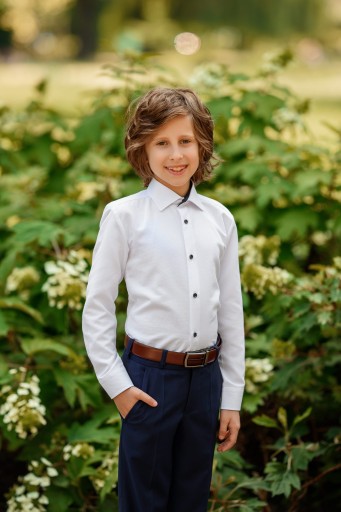Elegancka koszula dla chłopca w stylu smart-casual od polskiego producenta Frances to idealny koszula na rozpoczęcie lub zakończenie roku szkolnego, koszula wesela oraz inne uroczystości. Wykonana z najwyższej jakości tkaniny o fakturze w „cegiełkę”, zapewnia komfort i wyjątkowy styl. Koszula dla chłopca posiada granatowe guziki oraz subtelne obszycia wokół kołnierza i od wewnętrznej strony mankietów, dodając jej nowoczesnego charakteru. Dostępna w rozmiarach SLIM, REGULAR, XL oraz XXL co pozwala na idealne dopasowanie do sylwetki dziecka. Wybierając koszulę chłopięcą Frances, zapewniasz swojemu dziecku komfort noszenia i inwestujesz w wysoką jakość.