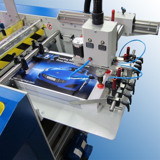 Wydruki wycinamy na automatycznym systemie Duplo DC-618.Dzięki zastosowaniu takiego rozwiązania możemy zniwelować przesunięcia pojawiające się podczas cięcia w stosie na gilotynie - Duplo czyta znaczniki i koryguje cięcie względem przesunięć w druku.