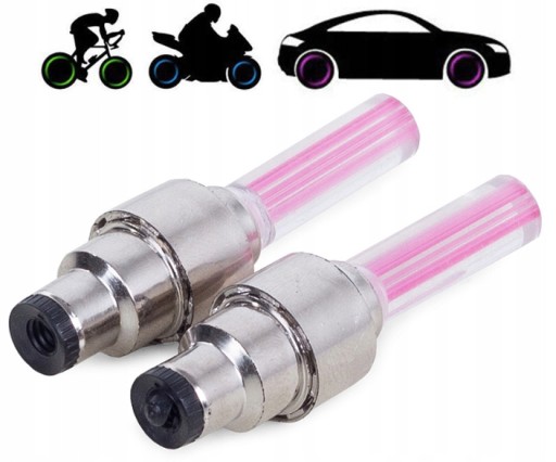 - Świecące wentylki w kolorze różowym, posiadają czujnik ruchu, który sprawia iż świecą tylko podczas jazdy.