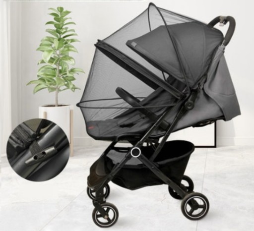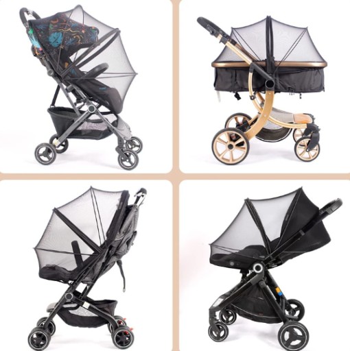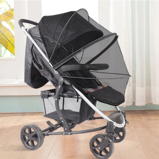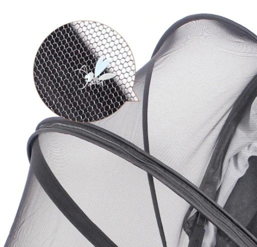 Moskitiera posiada mocną siatkę o drobnych oczkach, która chroni dziecko przed wszystkimi szkodnikami i owadami.