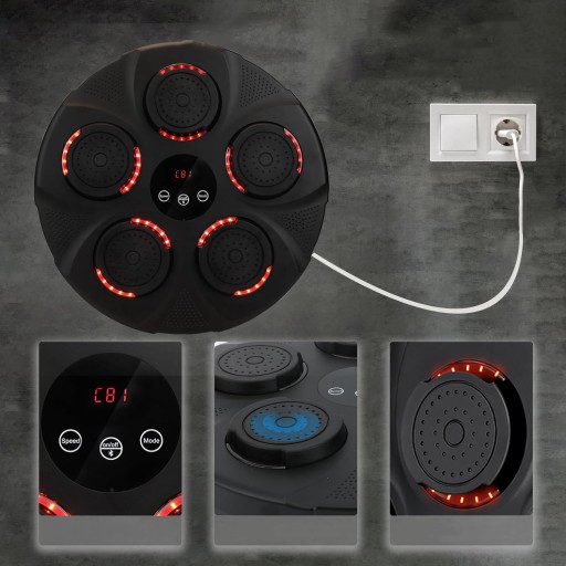 👊👊👊【MIGAJĄCE PUNKTY UDERZAJĄCE】 Mata bokserska jest wyposażona w 5 migających punktów uderzeniowych RGB, punkty uderzające zapalają się losowo w rytm muzyki, możesz podążać za rytmem muzyki i świateł, aby ćwiczyć boks. Możesz także ćwiczyć koordynację ręka-oko i zdolność reakcji na uderzenia