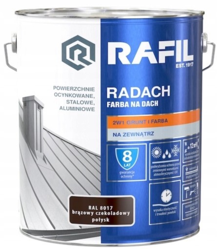 Farba przeznaczona do ochronnodekoracyjnego malowania zewnętrznych powierzchni metalowych: stalowych, ocynkowanych i aluminiowych, zarówno do wykonywania nowych wymalowań jak i renowacji starych powłok malarskich. Szczególnie polecana do malowania dachów, rynien, parapetów itp. Produkt do zastosowań profesjonalnych i przemysłowych.