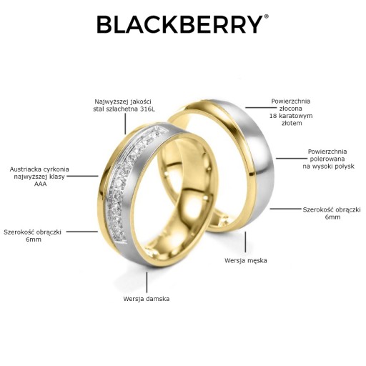 ОБРУЧАЛЬНОЕ КОЛЬЦО ЗОЛОТО СЕРЕБРО СТАЛЬ 316L 1 ШТ. BLACKBERRY KO7