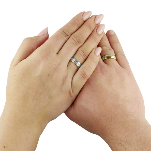 Luksusowe obrączki ślubne wykonane z najwyższej jakości stali szlachetnej, chirurgicznej 316L. Te obrączki to wyjątkowo szlachetne połączenie stali i złota oraz błyszczących znanych na całym świecie Austriackich szlifowanych cyrkonii, które zdobią obrączkę damską. Perfekcyjne wykonanie z wysoką dbałością o wszelkie detale oraz połysk gwarantują produkt najwyższej jakości. Doskonała kompozycja stworzona, by cieszyć, zachwycać i podkreślać miłość, jaką darzą się osoby decydujące się na wspólne życie. Idealne obrączki, które chciałoby się nosić na palcu przez cały czas i nie zdejmować ich nawet na chwilę.