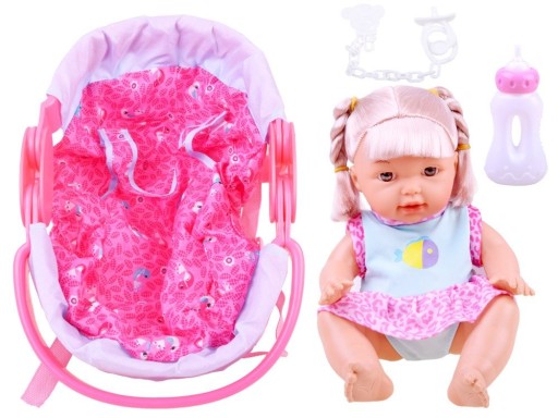 Dodatkowo zestaw zawiera akcesoria do karmienia niemowlaka. Pełen kompaktowy zestaw sprawdzi się w każdym małym pokoju dziecięcym. Dzięki temu iż nosidełko jest dość duże zmieści się w niej lalka ze wzrostem do 30cm!