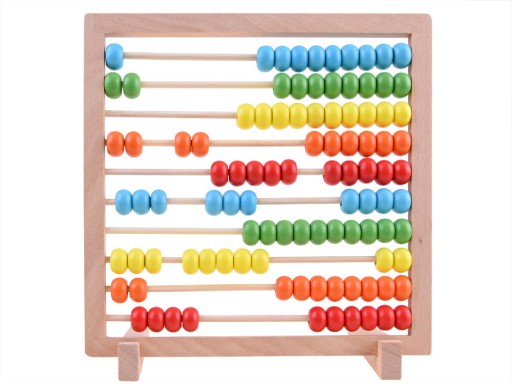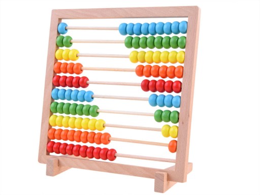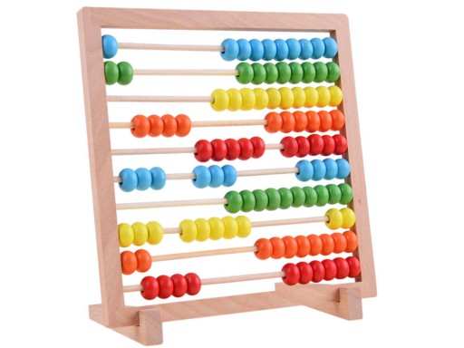 Klasyczne liczydło z koralikami, to jeden ze starszych sposobów ułatwiających liczenie. Świetnie sprawdzi się już podczas pierwszych prób liczenia przez dziecko.