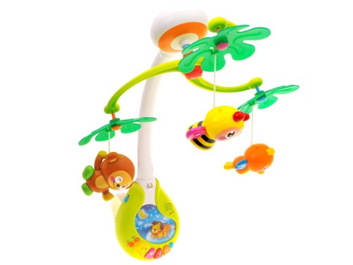 Zawieszki w postaci zwierzątek także mogą służyć jako grzechotki, ponieważ łatwo zawiesza się je na karuzeli.
