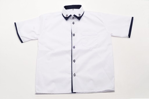 Elegancka koszula chłopięca z krótkim rękawem. Posiada kieszonkę z przodu po lewej stronie oraz podwójny kołnierzyk. Idealnie nadaje się na wszelkiego rodzaju uroczystości szkolne, kościelne czy rodzinne.