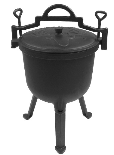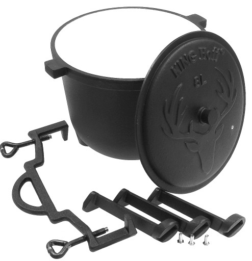 Kociołek myśliwski KING Hoff ma pojemność 8 litrów i stylowy wygląd (trzy nóżki, zamykanie na duże śruby, zdobienie z jeleniem). Będzie świetną atrakcją na spotkanie przy ognisku. Wspólne przygotowanie potrawy i jego zamykanie sprawi wszystkim wiele radości.