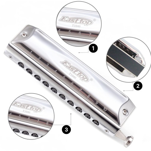 Harmonijka ustna chromatyczna 10-kanałowa 40-tonowa C-dur EastTop T10-40