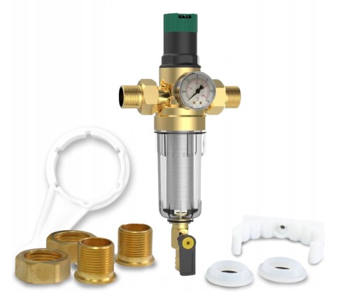 Mechaniczny filtr osadnikowy z manometrem i gwintem ¾"/1" samoczyszczący
