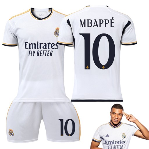 NA TEJ AUKCJI KUPUJESZ STRÓJ PIŁKARSKI MBAPPE REAL MADRYT Z NOWEGO SEZONU ! DRES POSIADA WODOODPORNY NADRUK KOMPUTEROWY ! ROZMIARY DZIECIĘCE DLA OD 98 DO 182 !