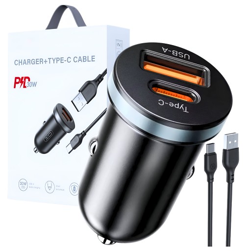 SZYBKA ŁADOWARKA SAMOCHODOWA USB QC 3.0, USB C PD 30W