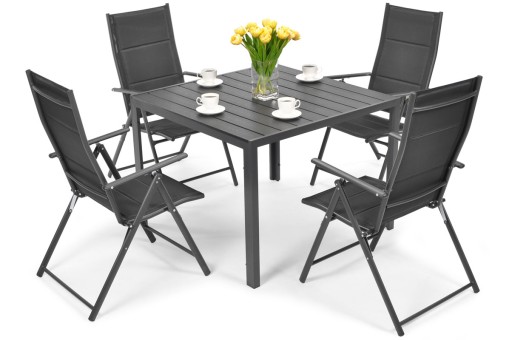 ▶ Wykonane zostało z wysokiej jakości aluminium, więc jest całkowicie odporne na rdzę. Materiał siedziska to textilene, który doskonale sprawdza się na meblach ogrodowych, gdyż jest wodoodporny i łatwy w czyszczeniu.