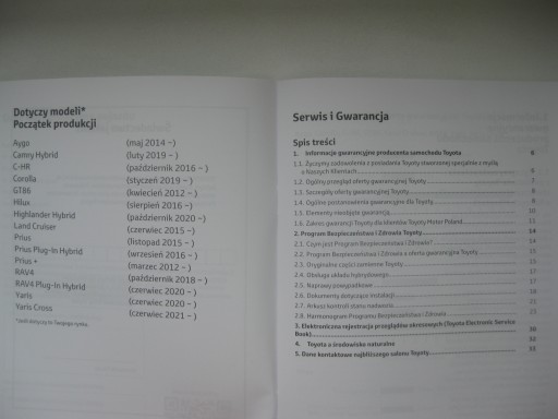 TOYOTA książka serwisowa przeglądów 2021 Polska