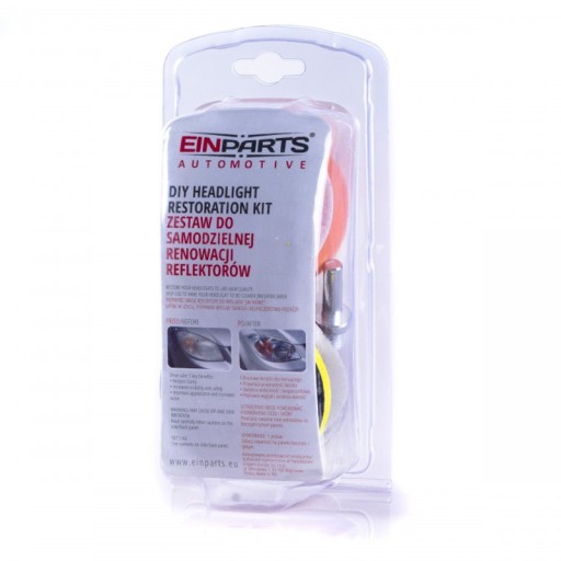 Zestaw do polerowania/renowacji reflektorów marki EinParts Automotive umożliwia usunięcie rys, odbarwień, zmatowień