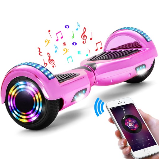 Deskorolki elektryczne Dla dzieci Hoverboard Bluetooth LED Z Torbą,Pilot -Różowy Chrom